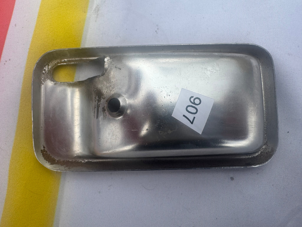 - OEM Original Driver-Side Metal Door handle bezel for a 1964-1969 Toyota Corona. This came off a 1969 Corona 4-door.