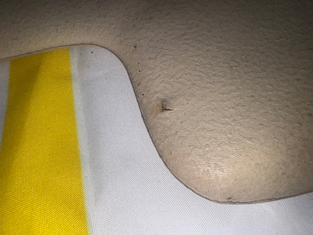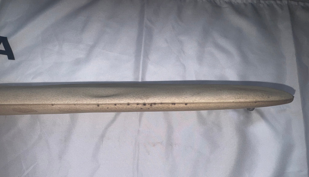 Used in really good condition. One small tear in the vinyl near the "L" edge. One crack in the plastic covering of the clip rod. It also needs a good cleaning as well.