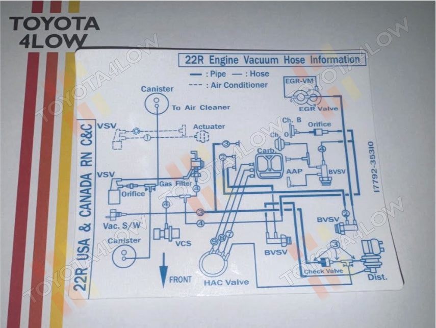 - For 1983 Toyota Pickup / Hilux with a 22R, USA / Canada emissions with C&C.