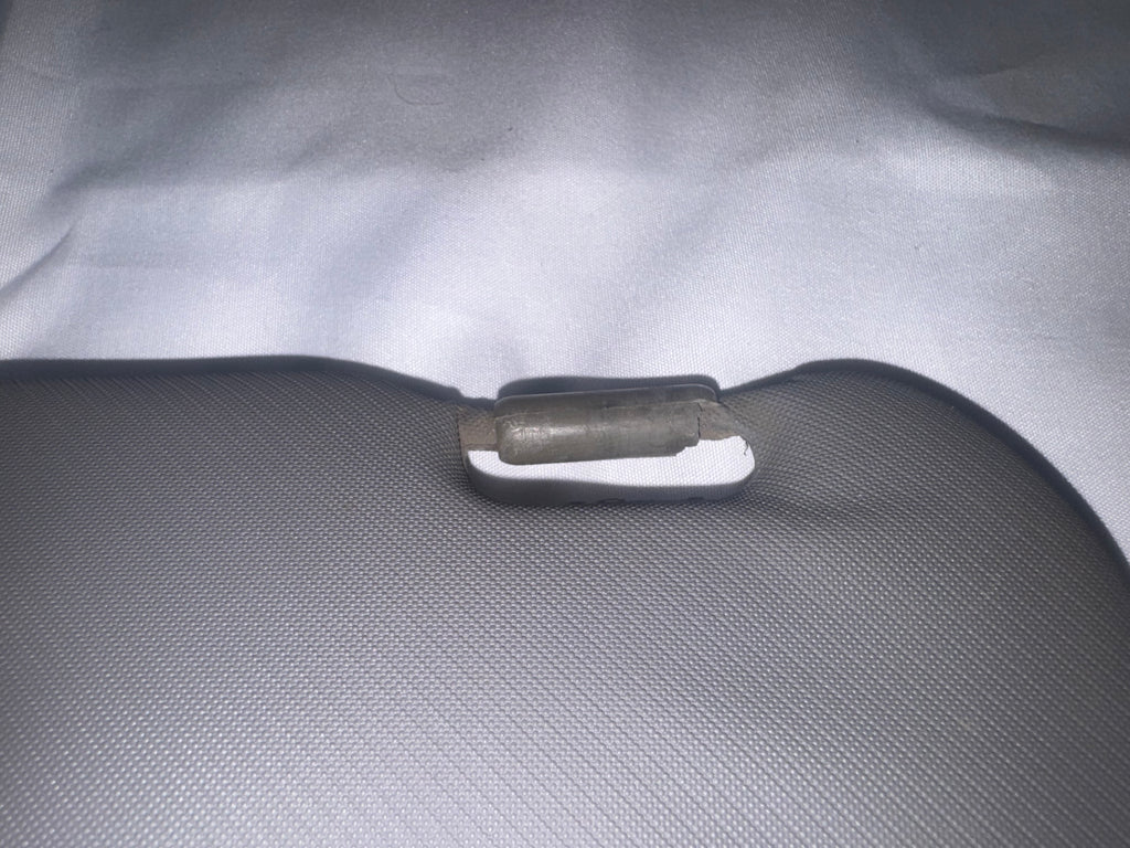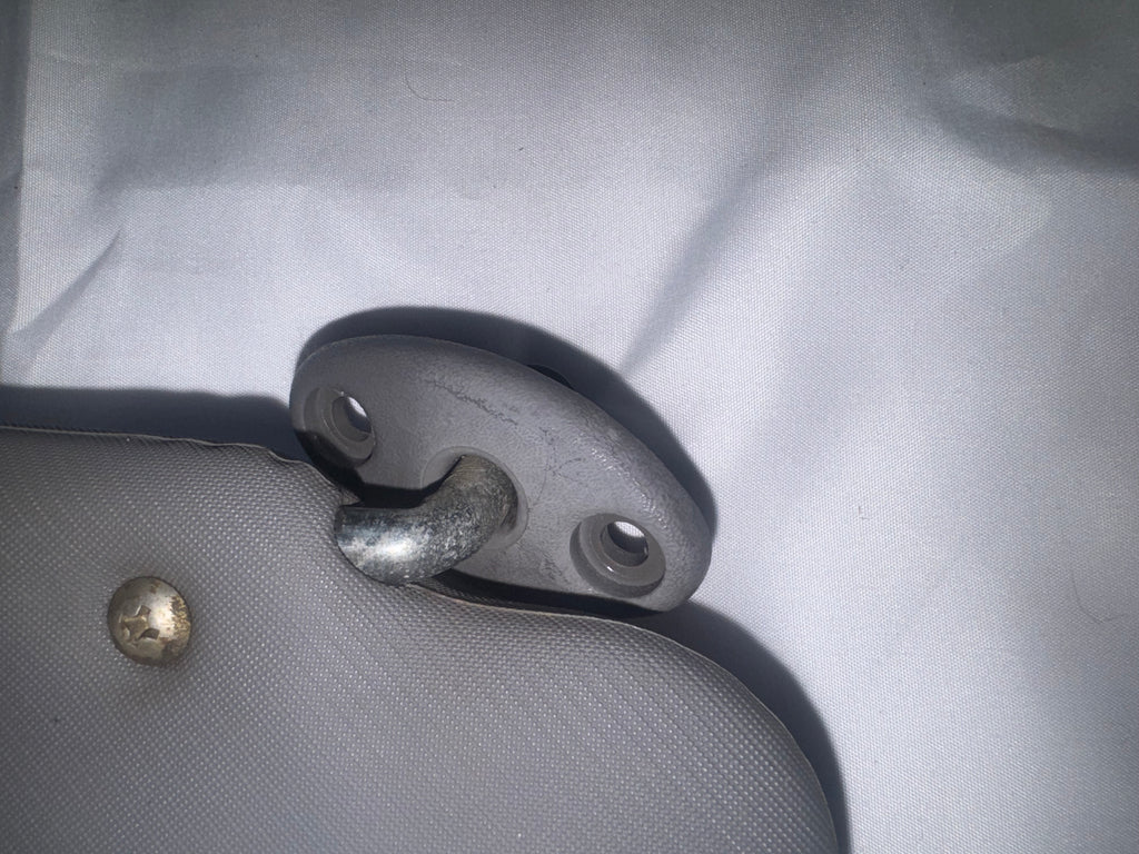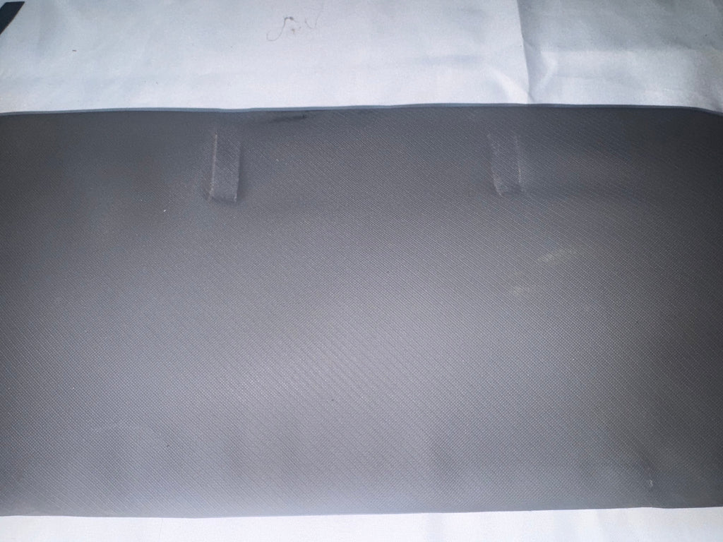 - Does have small dimples in fabric, not sure from what. Crack in plastic along spring on hinge (normal).