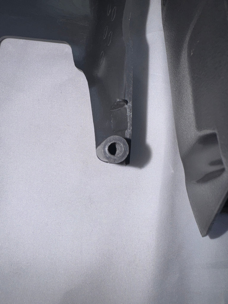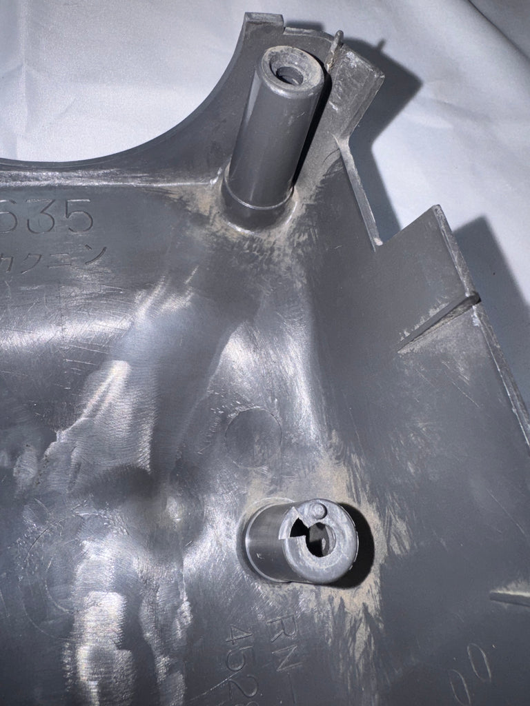 - In really good condition. No visible cracks or missing plastic on the outside. The screw holes are all intact except for one missing a small piece.