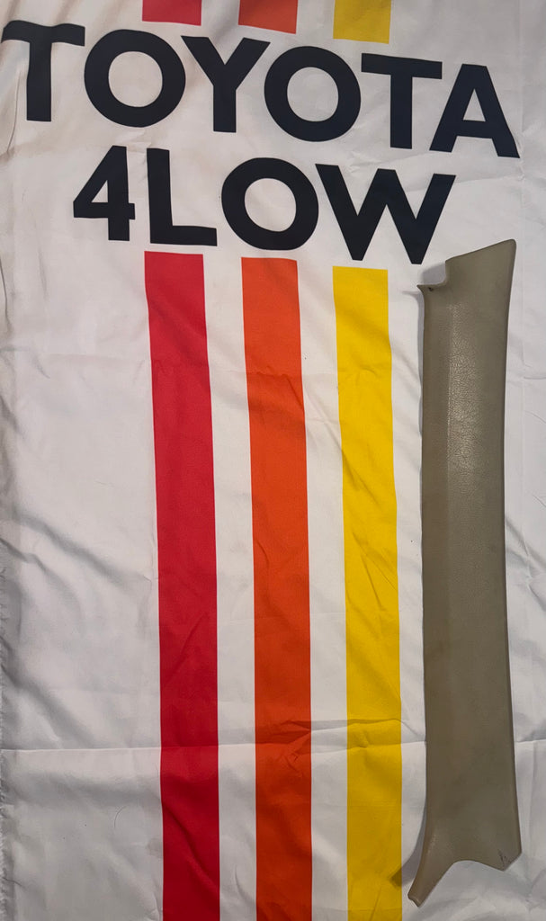 Original Passenger-Side A-pillar trim in factory Grey that will fit 1984-1988 Toyota pickups and 1984-1989 4Runners. This came out of a 1985 2wd single cab pickup with grey interior.
